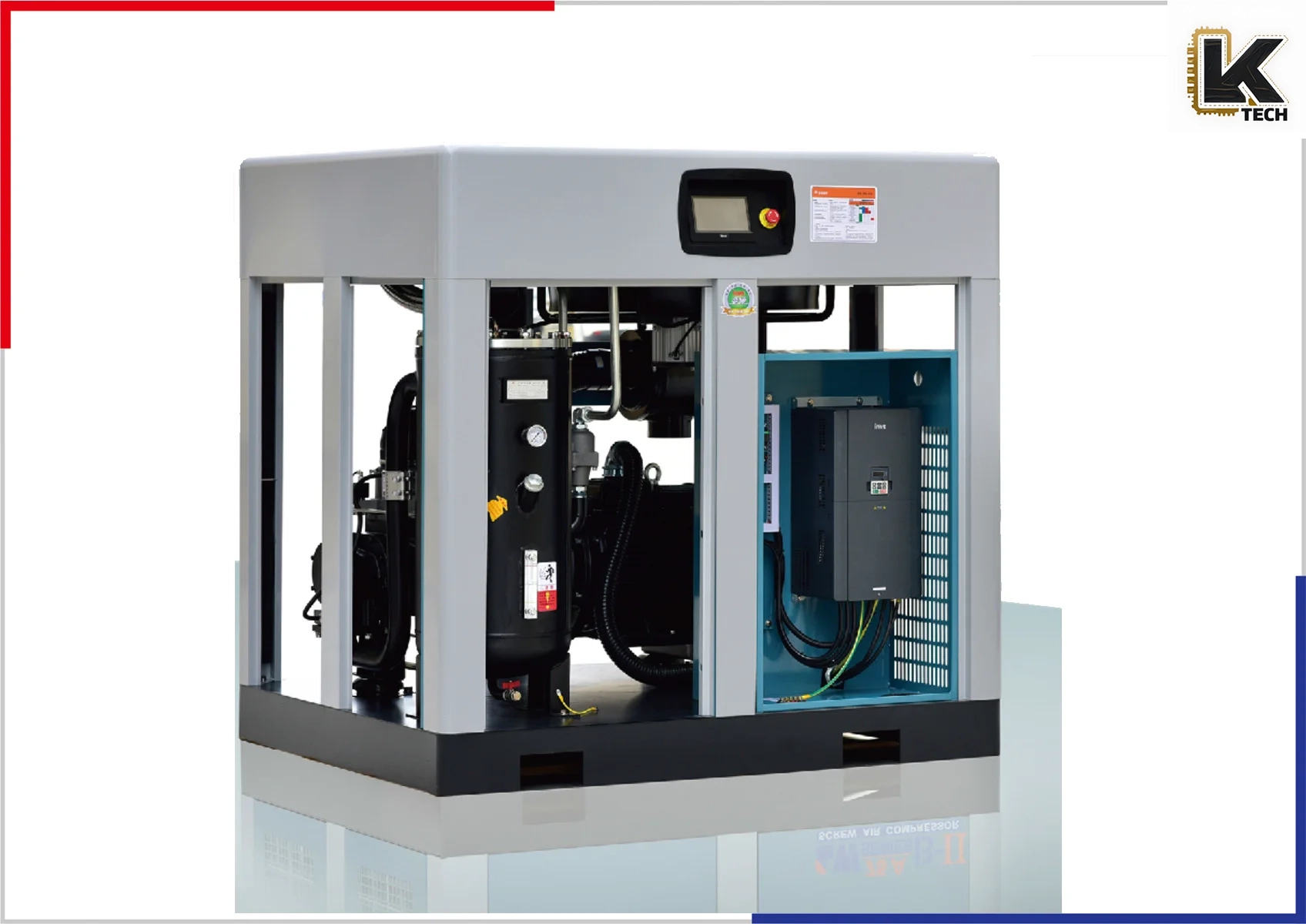 - Built with high-quality materials, the compressor’s sturdy design maximizes durability and minimizes the need for maintenance. The exterior is designed to withstand harsh industrial environments, ensuring long-term reliability.