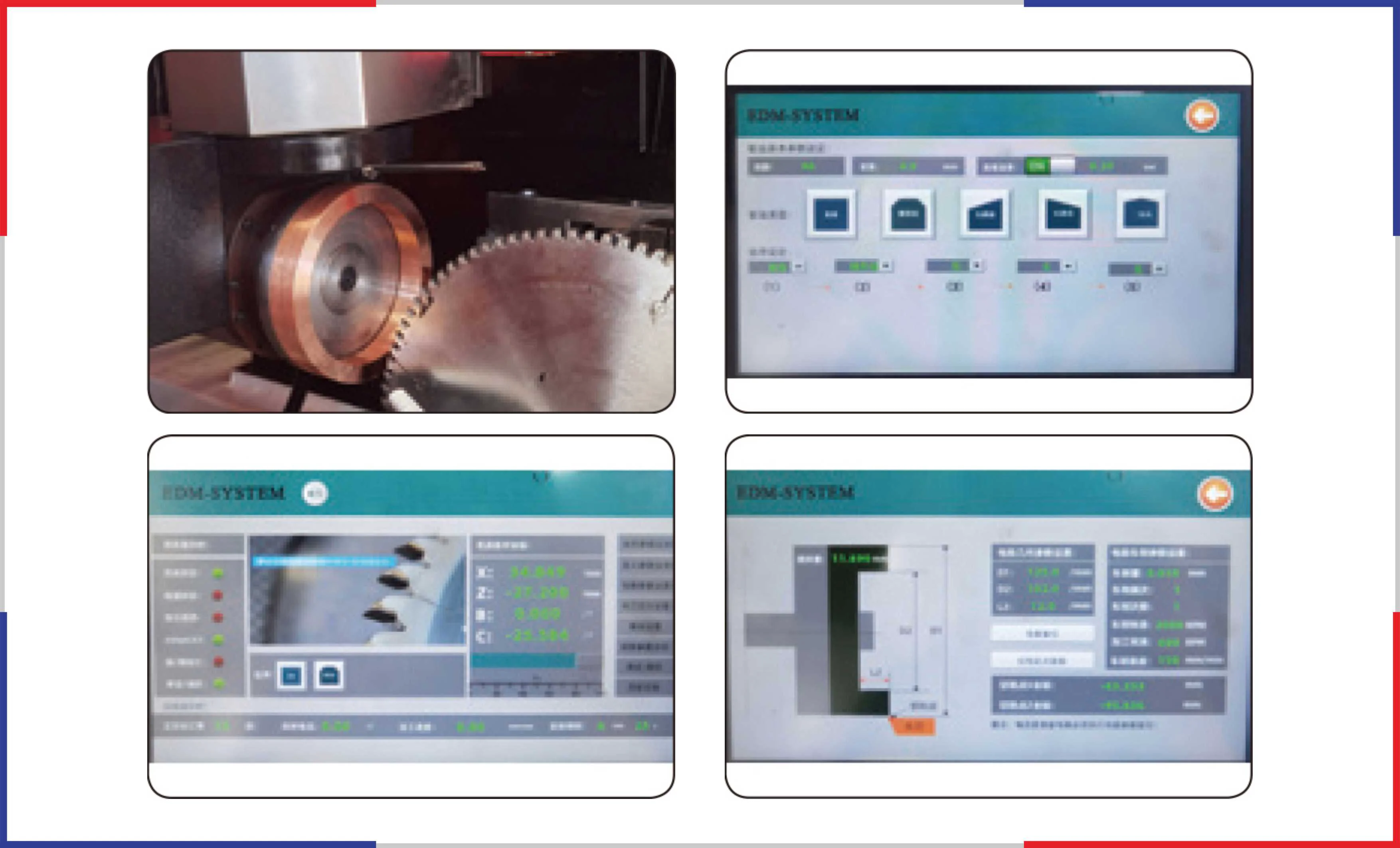 - Precision Control System: The ITE570-CNC boasts an intuitive control panel equipped with touch-screen functionality, enabling operators to navigate its features effortlessly. The EDM system enhances the pushing and pulling operations via adjustable servo drives, facilitating the precise control of the sharpening process.
