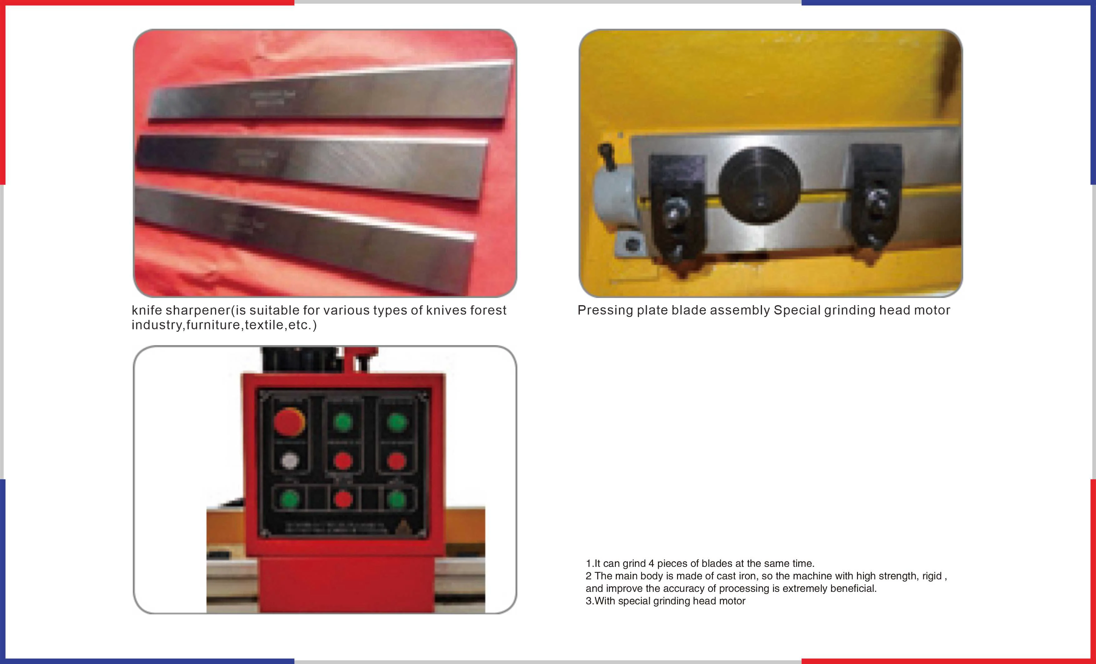- User-Friendly Control Panel: The advanced control panel is designed for intuitive operation. With clearly marked buttons and indicator lights, users can easily control the sharpening process with a straightforward interface, making the equipment accessible for all levels of operators.