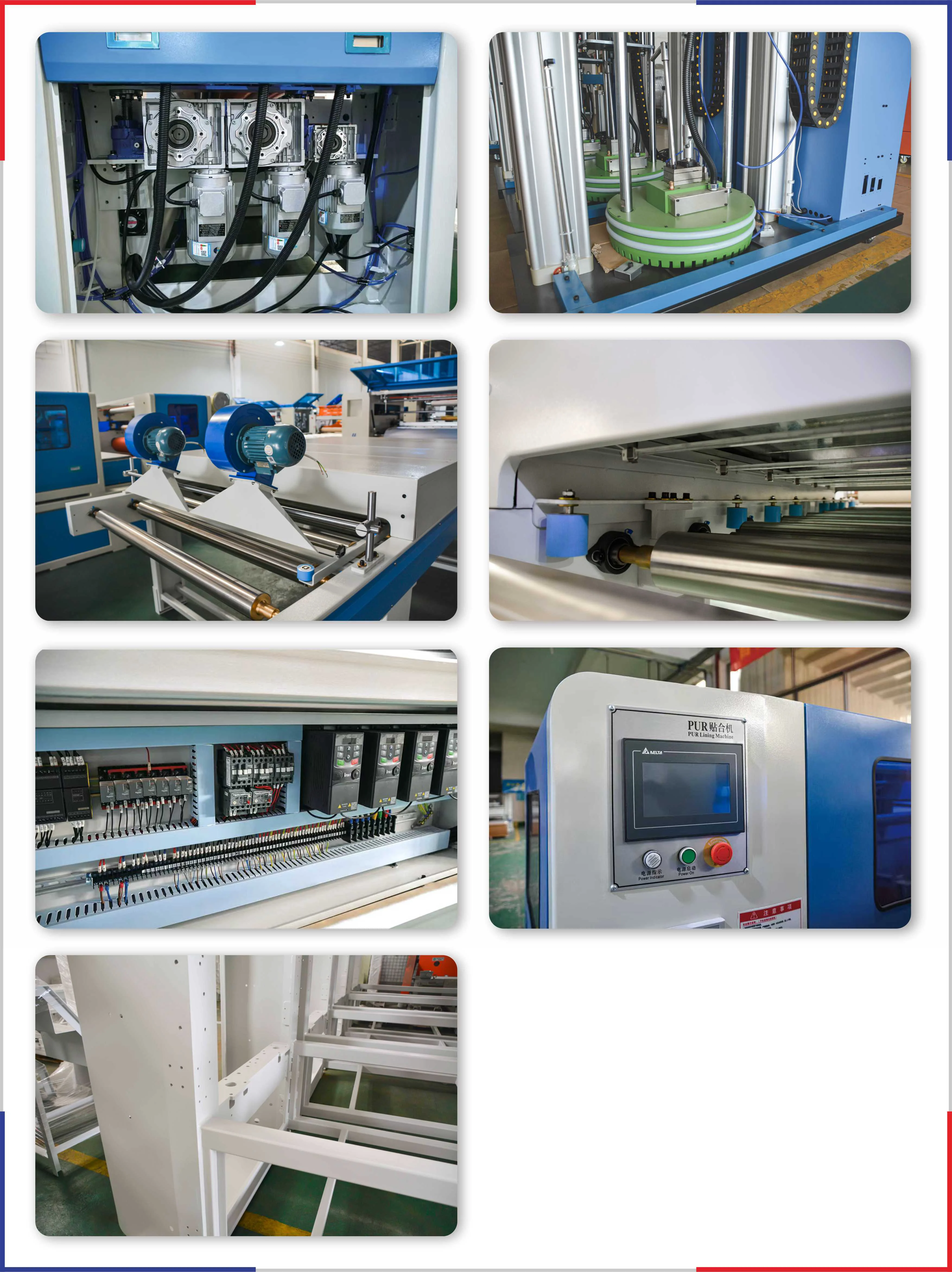 - Adhesive Application: The spreader uniformly applies the PUR (Polyurethane Reactive) glue, ensuring consistent coverage across the entire surface area.