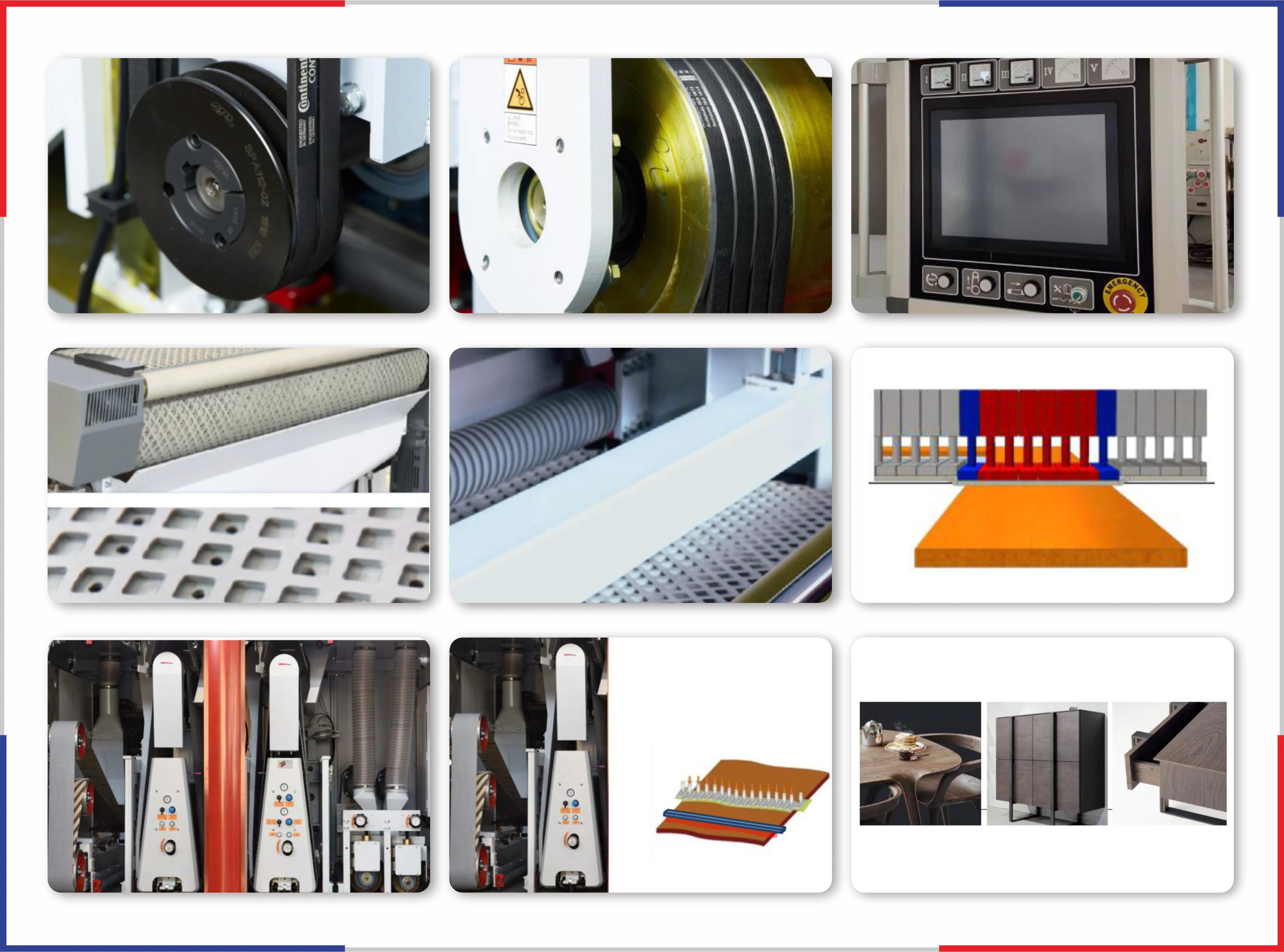 - Versatile Feeding Speed The Segmented Pad Sander boasts an adjustable feeding speed ranging from 7 to 36 m/min. This adaptability enables flexibility in operation, allowing users to optimize the sander’s speed according to the material type, thickness, and desired finish.