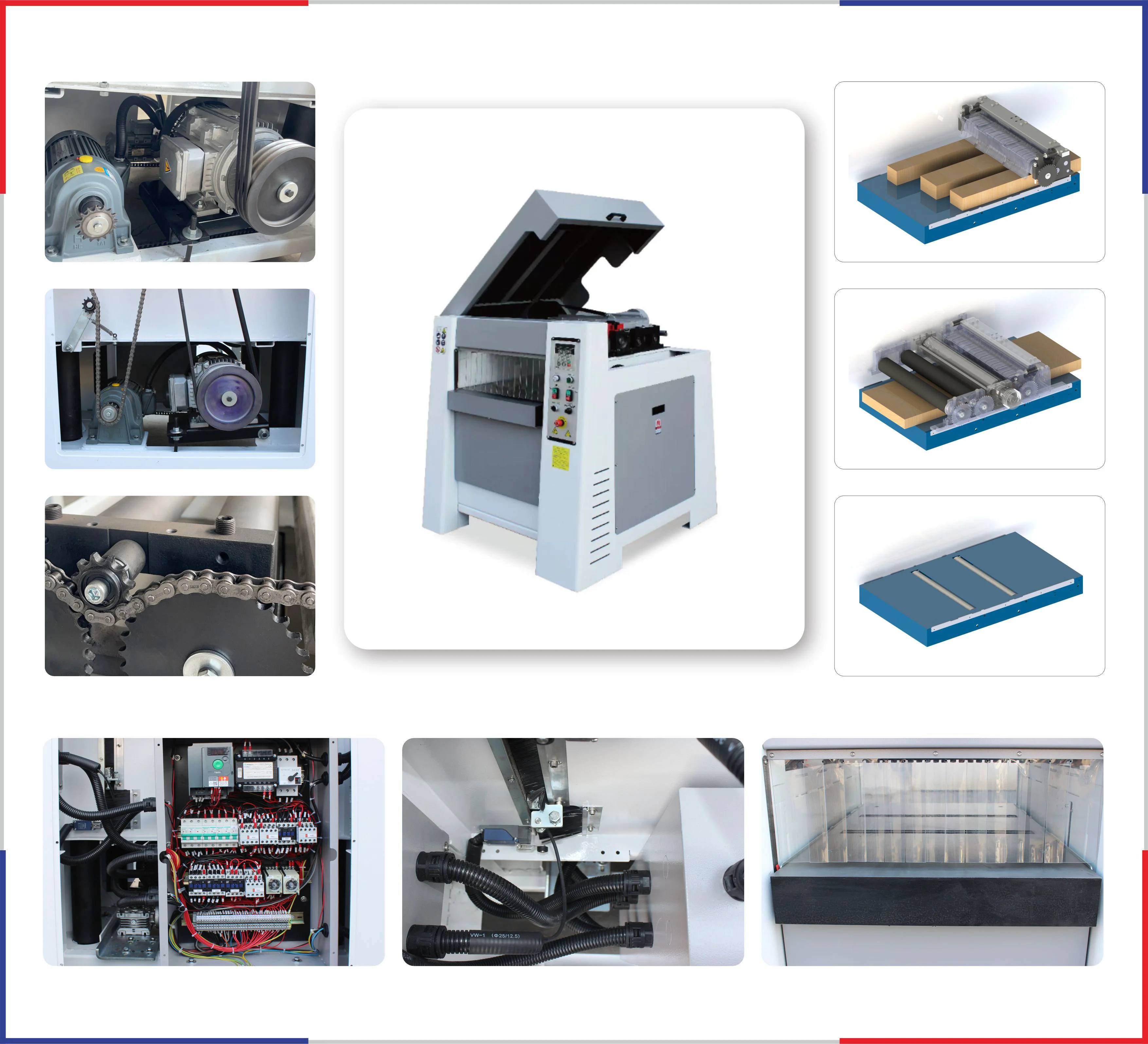 3. Precision Feeding System With a variable feeding speed of 5 to 20 meters per minute (MT/1’), users can effortlessly adjust the feed rate to accommodate different materials and desired finishes. This range flexibility allows for high-quality results across a variety of wood types. The machine includes first and second feeding rollers (optional), ensuring your workpieces are securely held in place during operation.